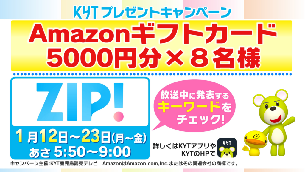 キャンペーン主催:KYT鹿児島読売テレビ AmazonはAmazon.com, Inc.またはその関連会社の商標です。