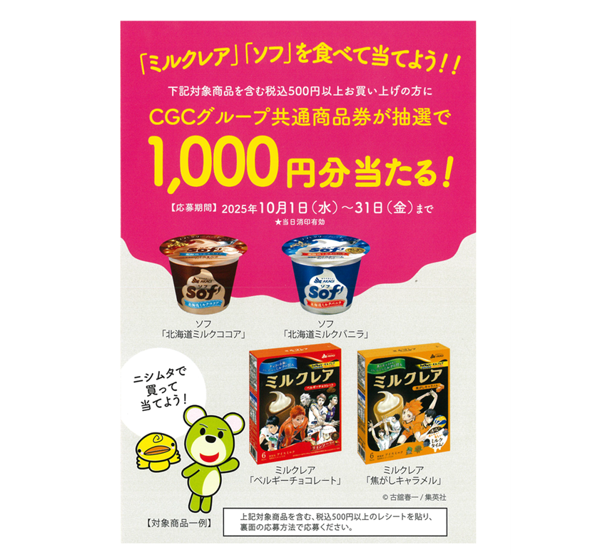 ご応募いただいた方の中から、抽選でCGCグループ共通商品券1,000円分が当たる!