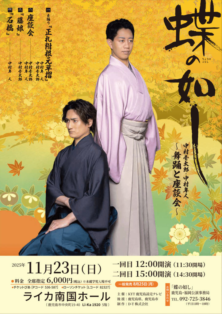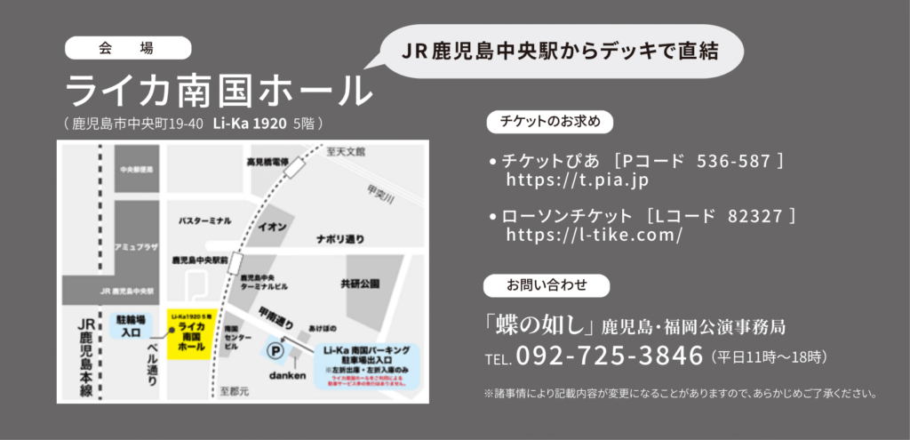 お問合せ:「蝶の如し」鹿児島・福岡公演事務局