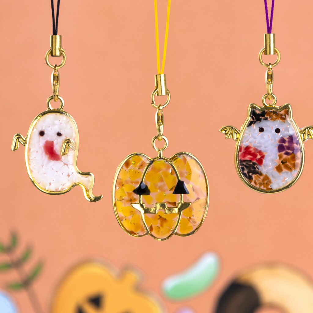色鮮やかな切子かけらでつくる特別なキーホルダー。ハロウィン限定フレームもお楽しみに♪