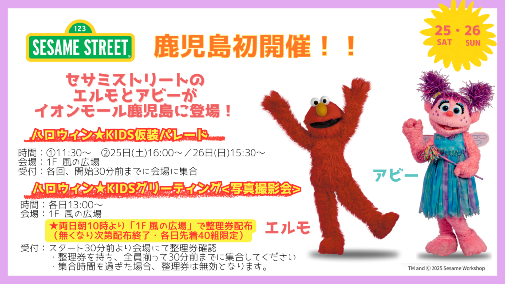 【鹿児島初開催 セサミストリートがやってくる!】<両日開催>