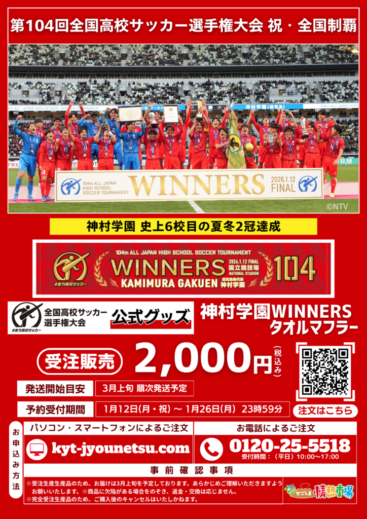 - 【1月26日(月)まで!】神村学園WINNERSタオルマフラー予約受付中!