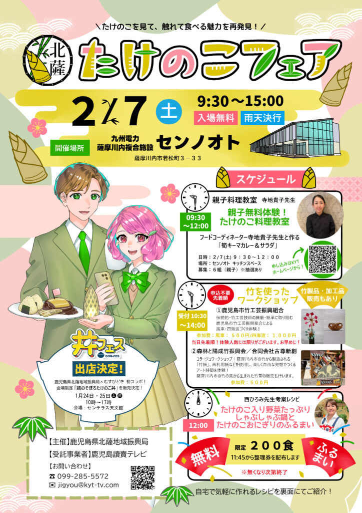 | イベント名 | 親子で無料体験!たけのこ料理教室 in センノオト 筍のキーマカレー&サラダを作ろう! ~ 鹿児島県産たけのこを楽しく学ぶ!親子料理教室 ~ |
