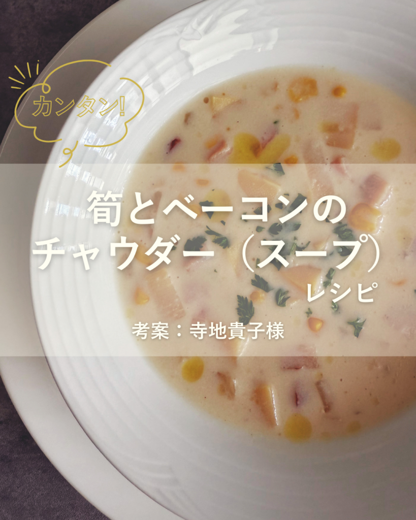 | 講師 | 寺地 貴子 氏 (フレンチレストランBelle Franceオーナー・一級フードコーディネーター) 食育や栄養管理に携わる寺地先生が、たけのこの魅力や扱い方を丁寧に教えてくれます。 |