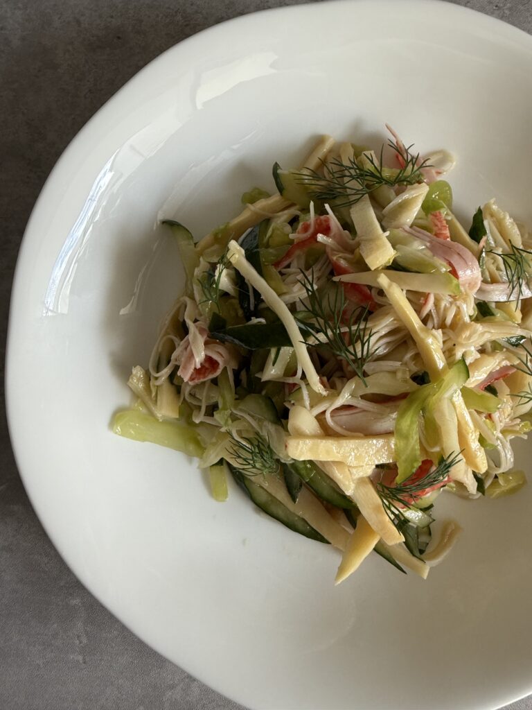 | 11:00~ | 実習 ※主にサラダの実習を行います ①サラダと筍とベーコンをフライパンで焼く ②ドレッシングを作る ③ワンプレートに盛り付ける |