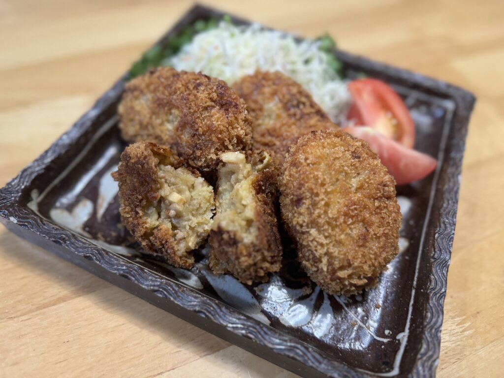 | ⑤ | 小麦粉→卵→パン粉の順で衣をつけ、 170~180℃で色付くまで揚げる |