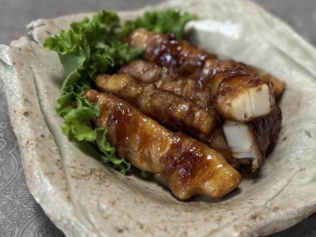 | ① | タケノコは太めの棒状に切り、ペーパーで水気をふく(豚肉の枚数に合わせて切る) |
