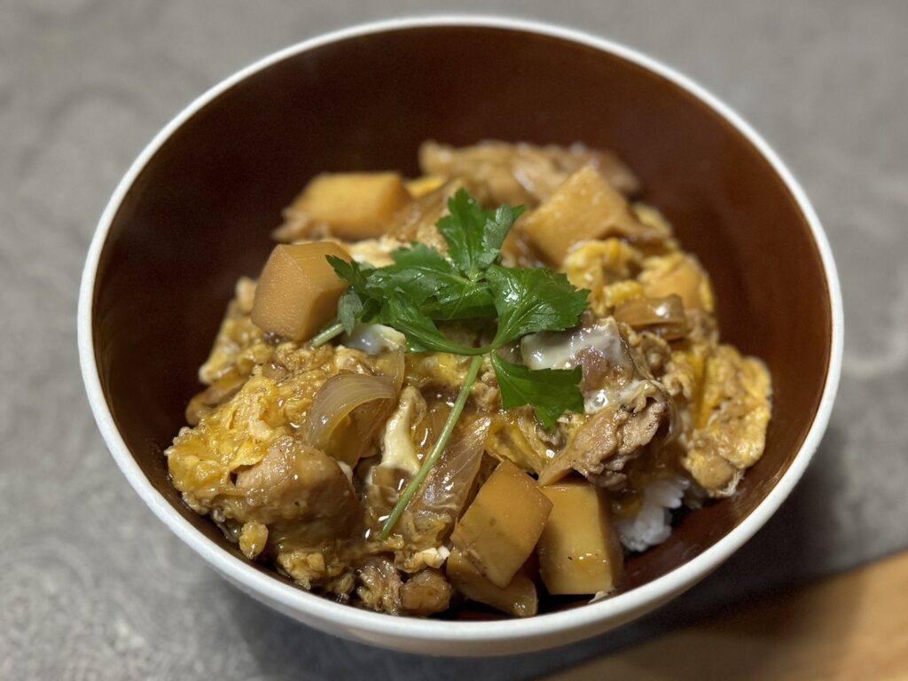 | ① | 鶏もも肉は一口大に切る タケノコは1cm角のサイコロ状に切る 玉ねぎは1cm幅のくし切りにする 卵を溶いておく |