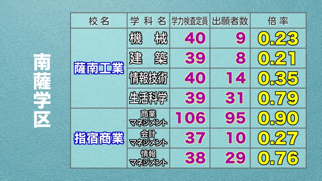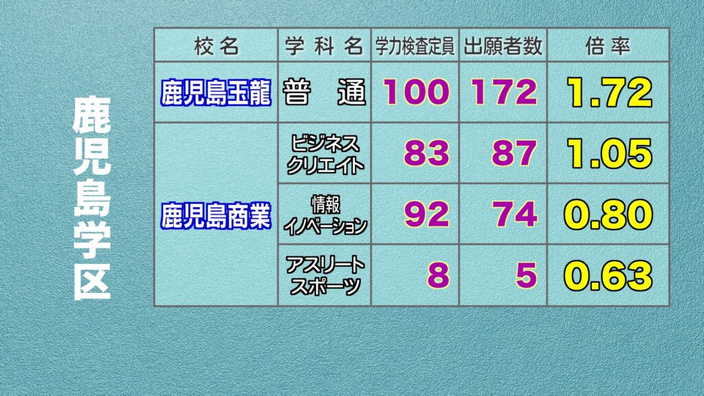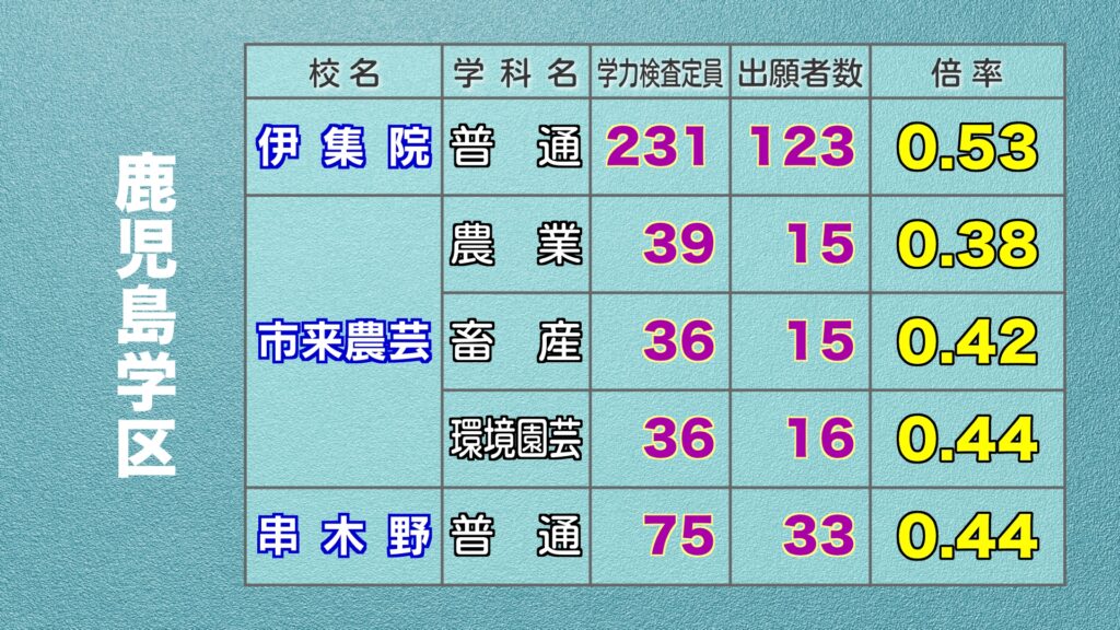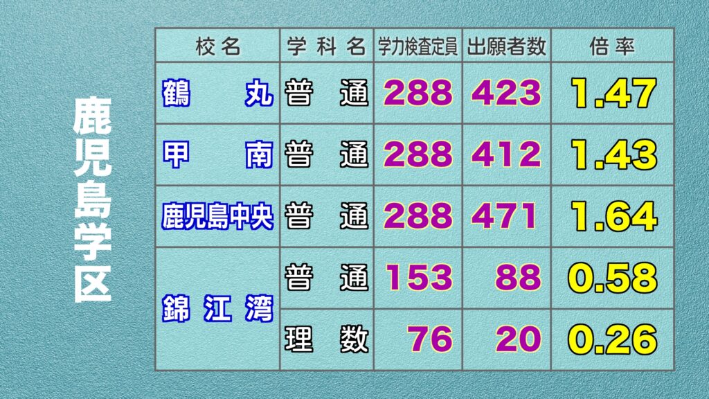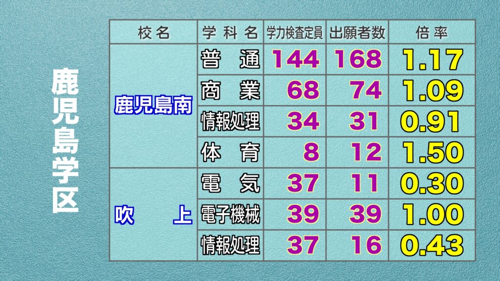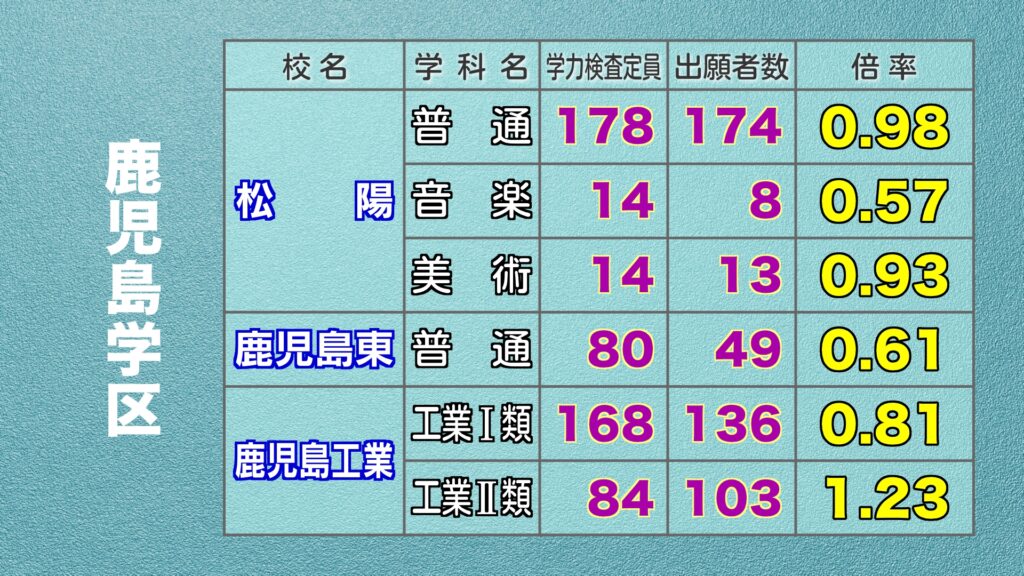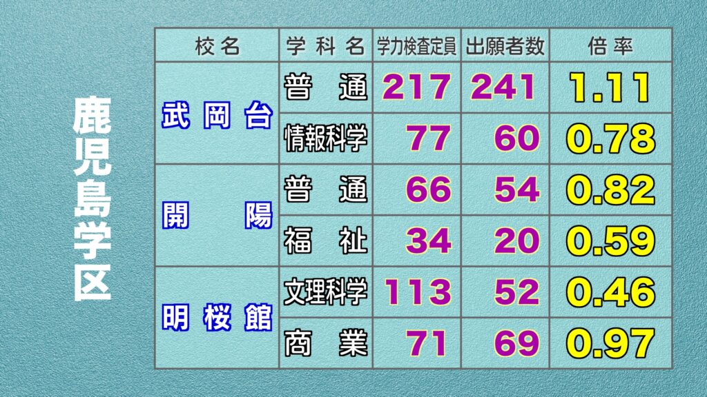鹿児島県公立高校入試 最終出願倍率