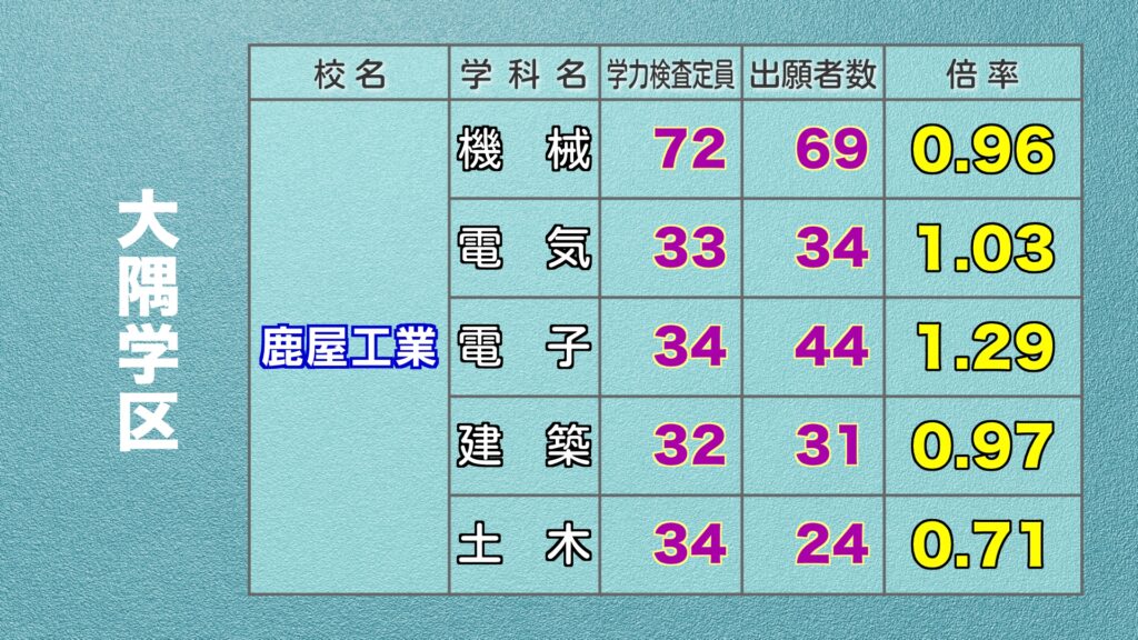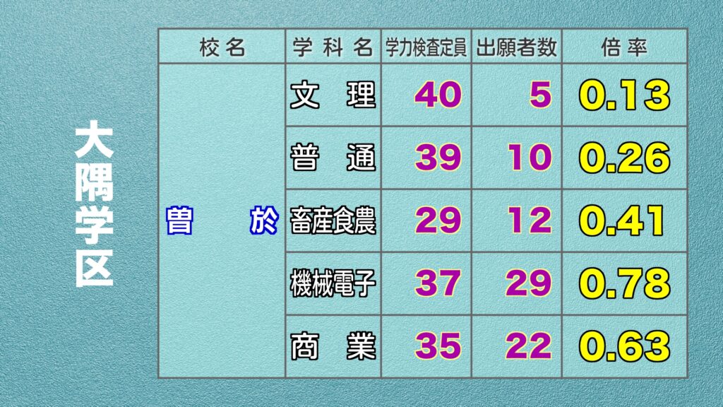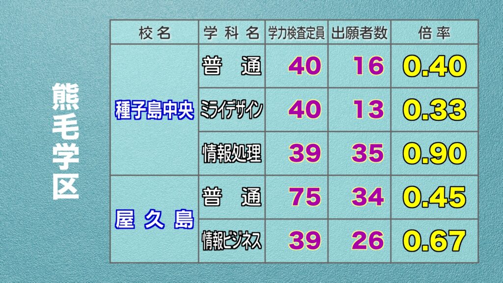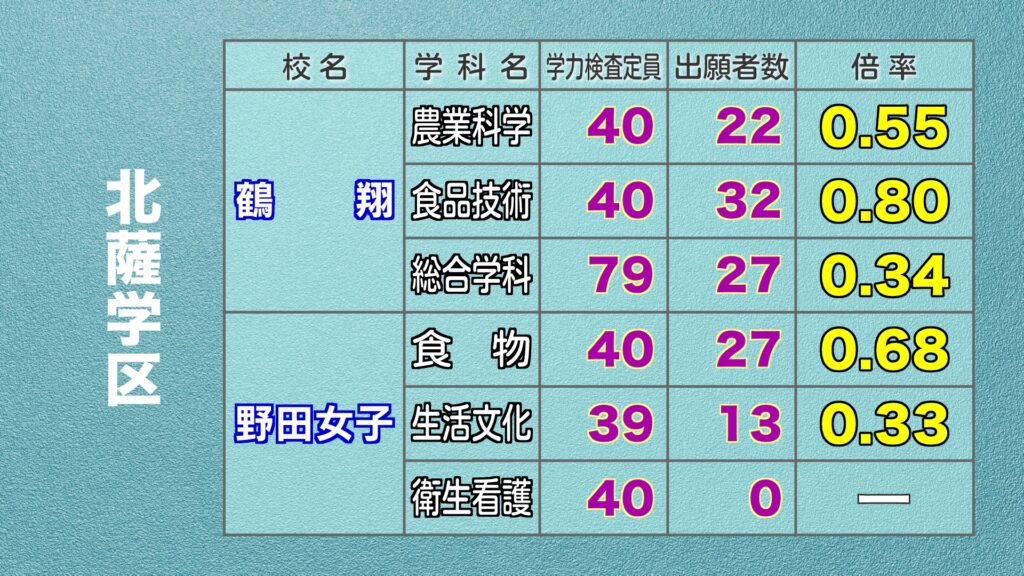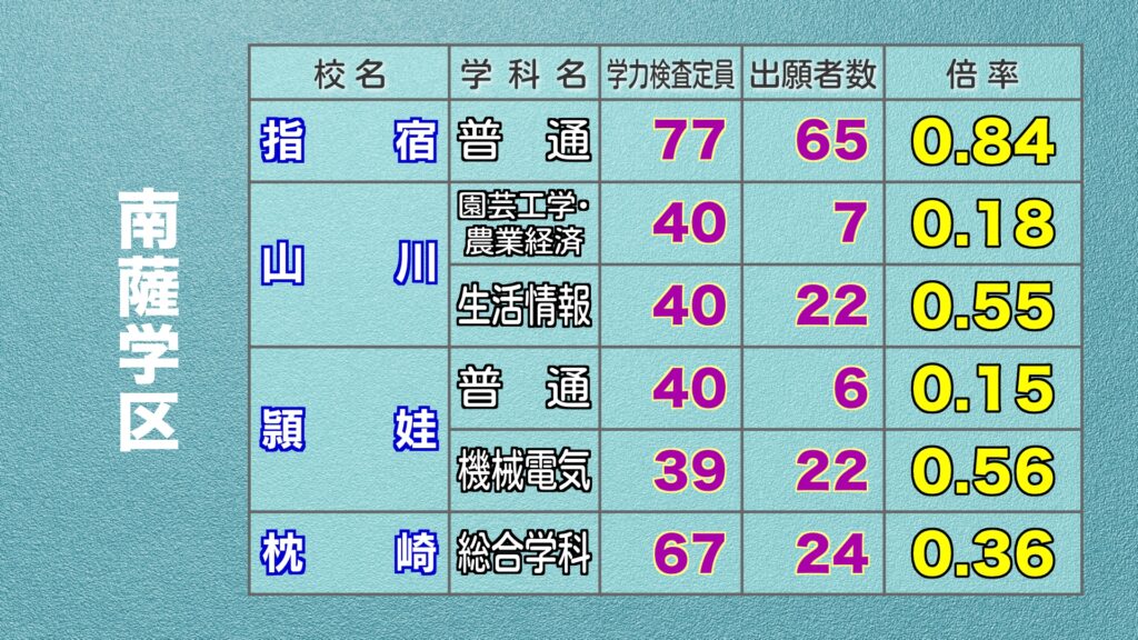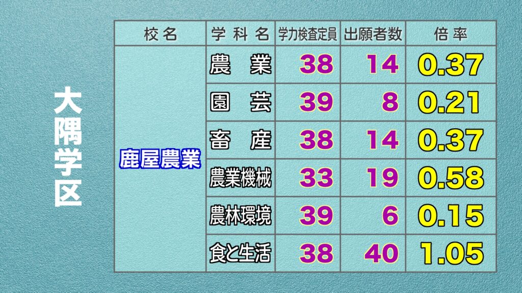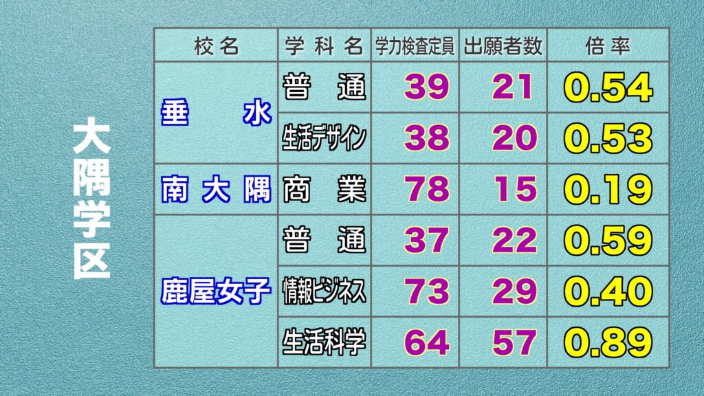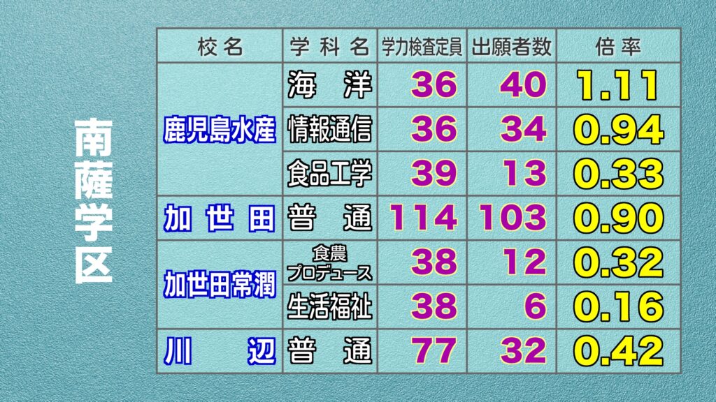 鹿児島県公立高校入試 最終出願倍率