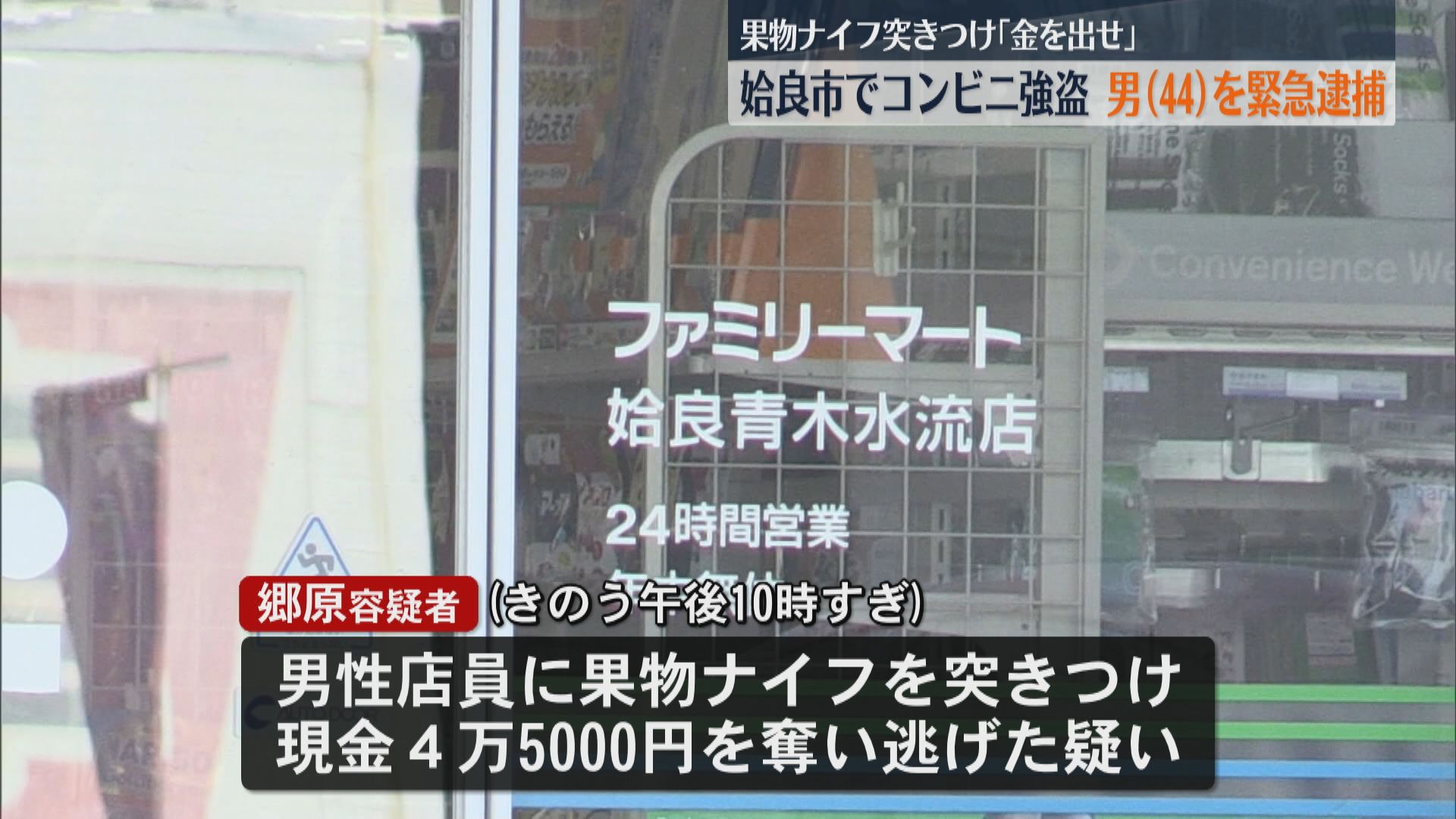 「金を出せ」レジにあった現金4万5000円を奪って逃走…コンビニ強盗で男(44)を緊急逮捕 パトロール中の警察官が現場近くで発見