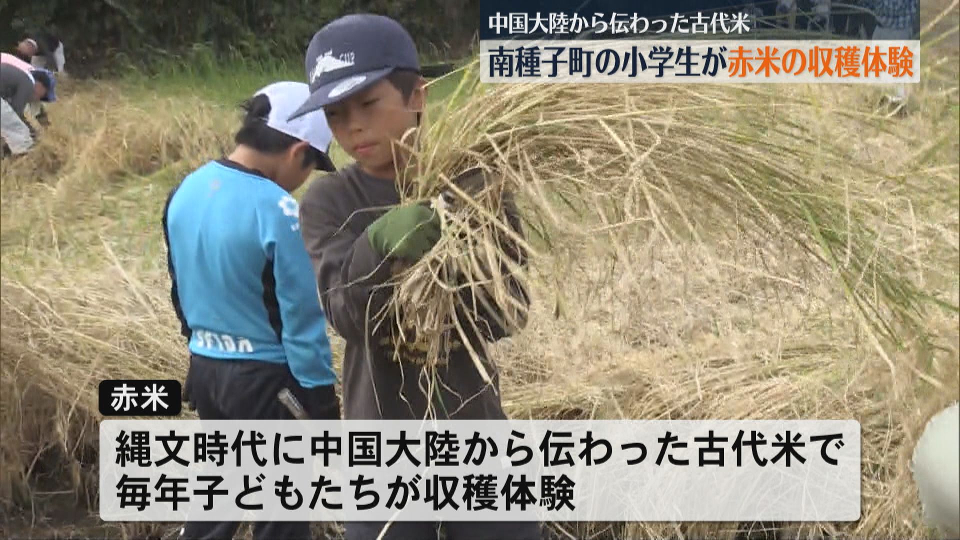 南種子町で小学生が赤米の収穫を体験 縄文時代中国大陸から伝わった古代米 非常にいい出来