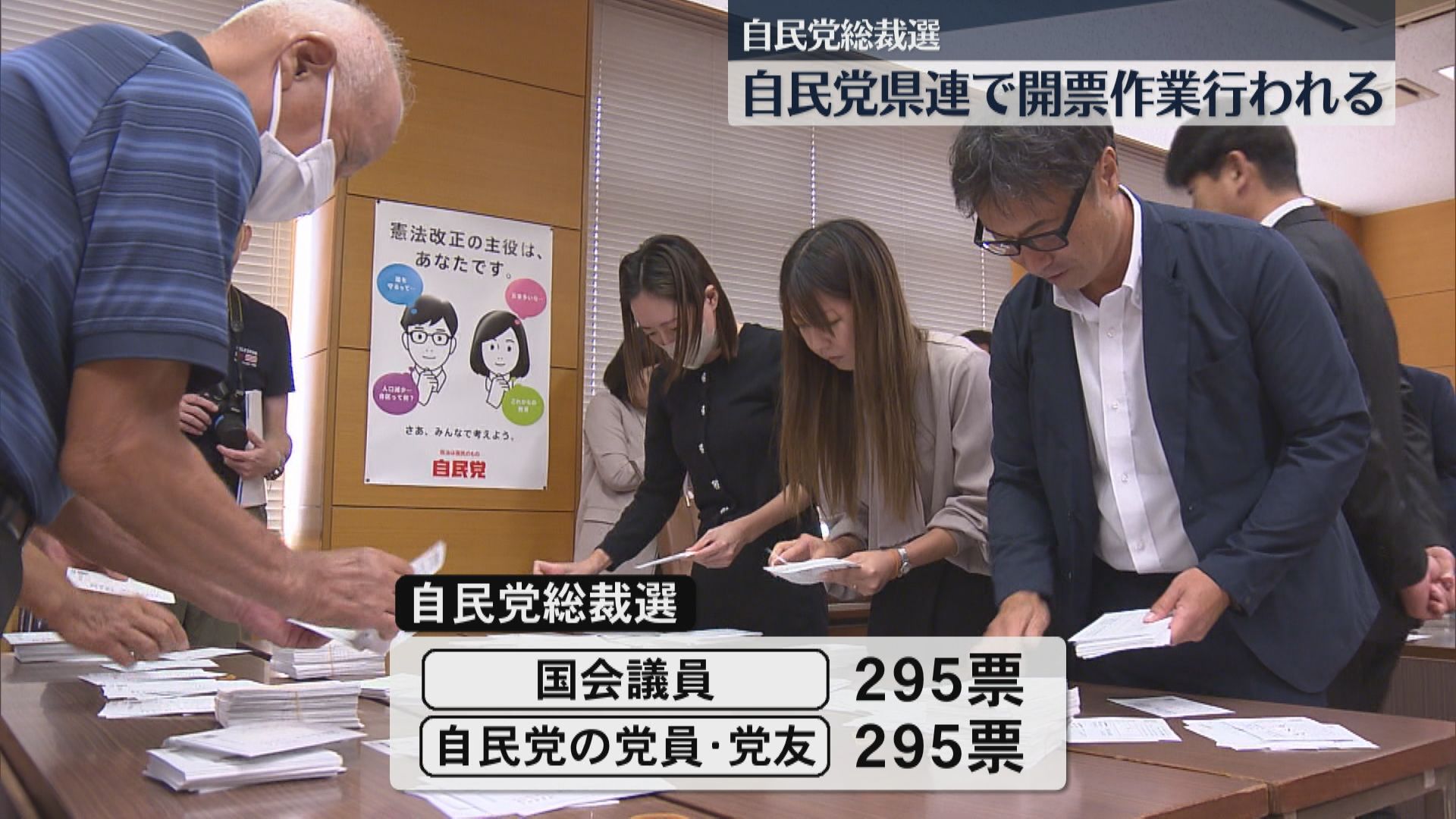 県内でも開票作業進む 自民党の総裁選挙 県内の投票率は65.52%